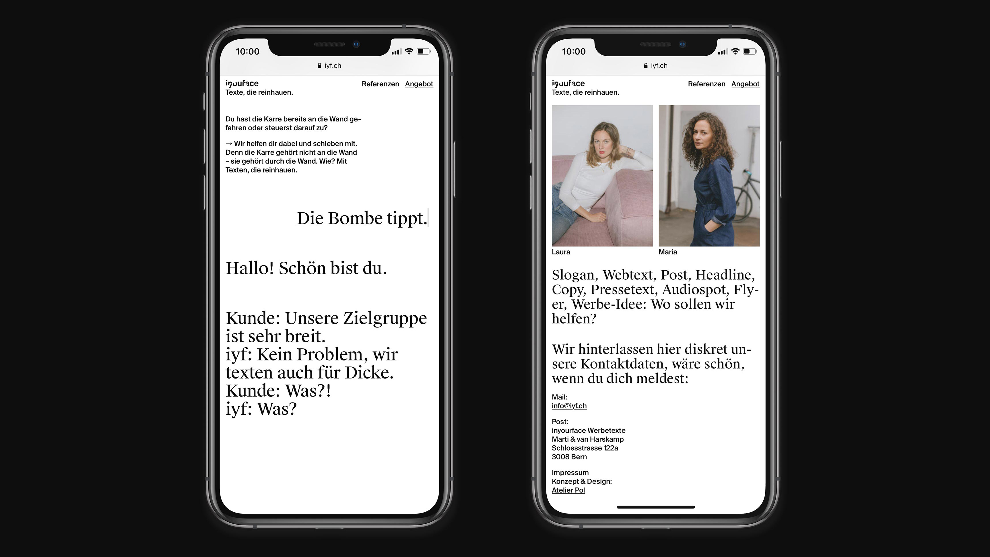 Ein überraschendes und frisches Konzept. Der spielerische Umgang mit Text wird konsequent in der Gestaltung inszeniert. Die kreative Arbeit der Texterinnen wird so zum typografischen Erlebnis. Reduziertes Web-Design im Dienst des Wortes.